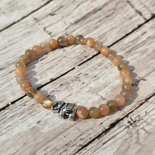 5mm Reiki Infused Skeletal Sunstone Bracelet with Elephant Charm