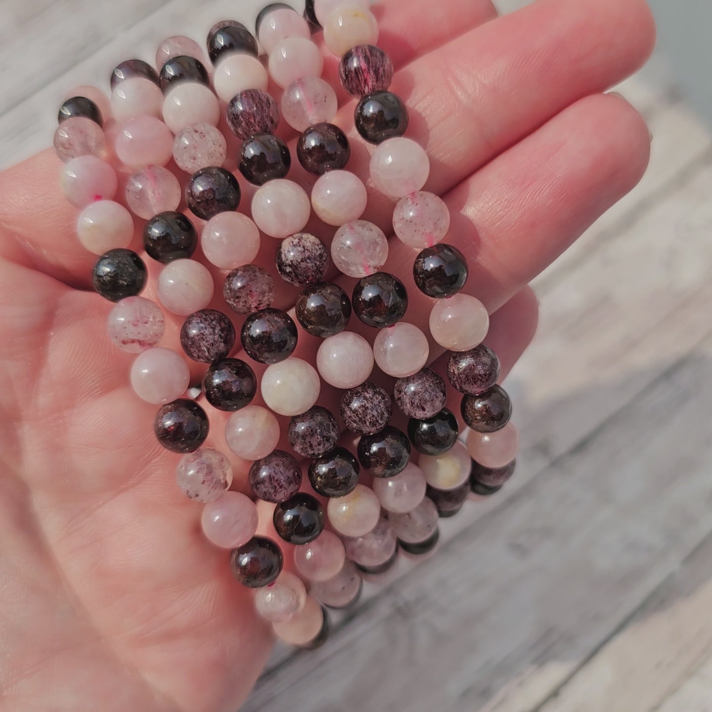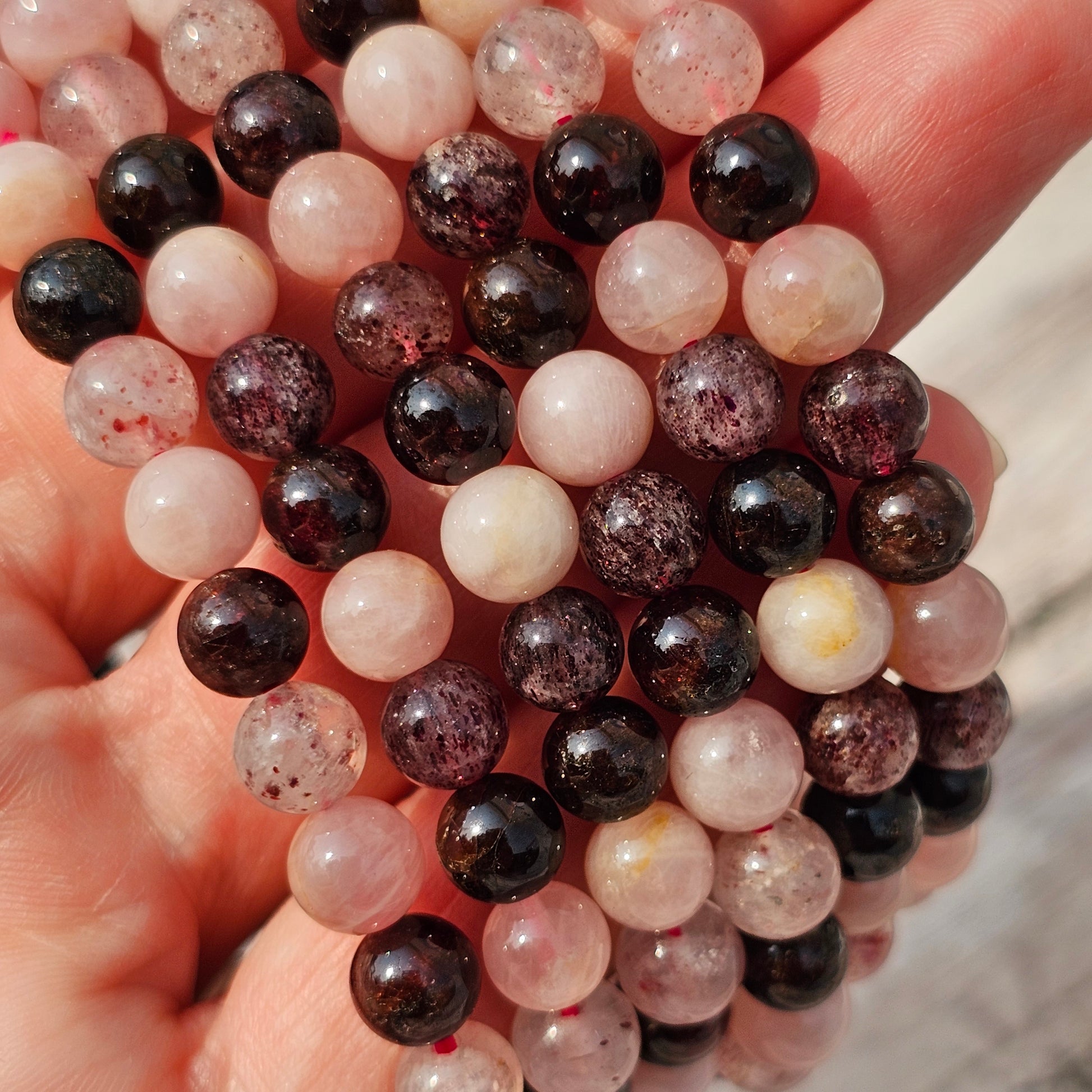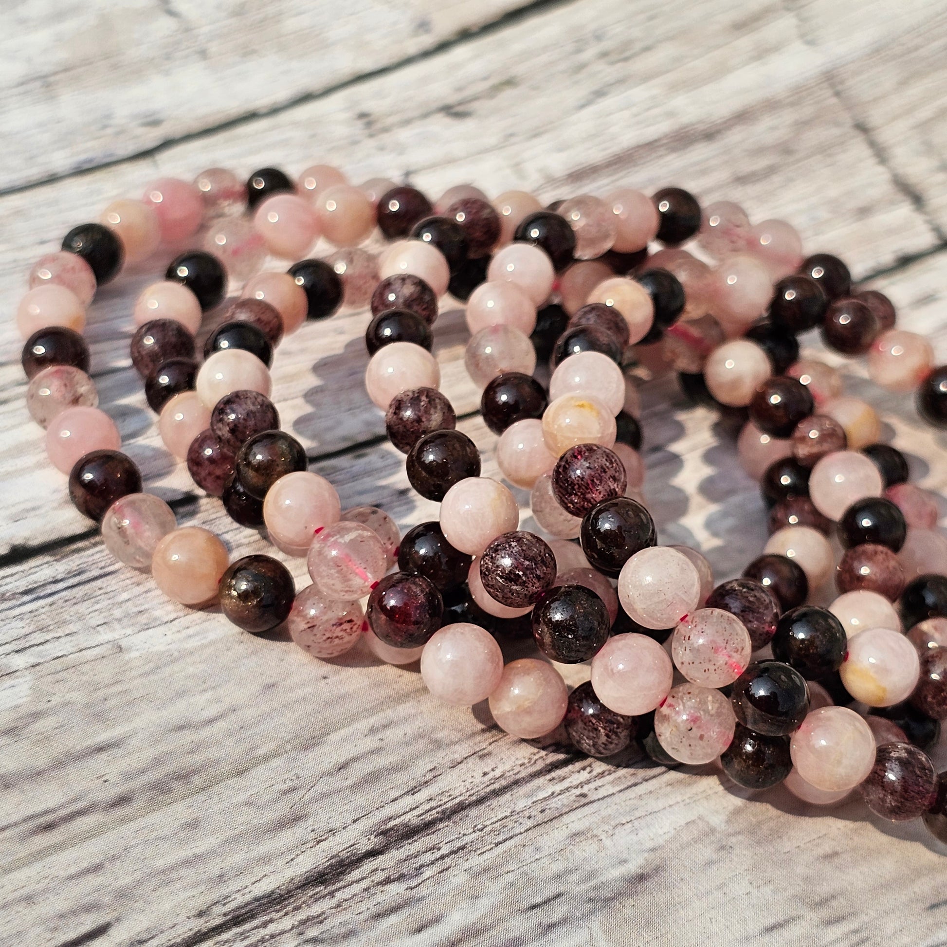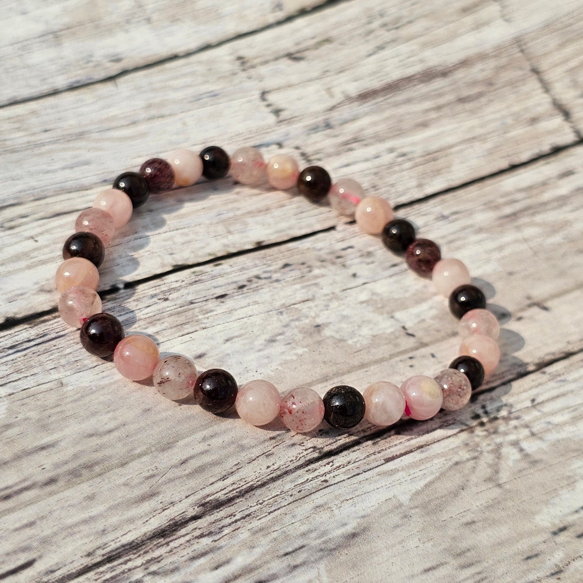 Introducing our exquisite Heart Chakra Crystal Bracelet, meticulously crafted with the harmonizing energies of rose quartz, strawberry quartz, and garnet stones. This bracelet serves as a radiant companion, resonating with the power of love, compassion, and emotional healing.