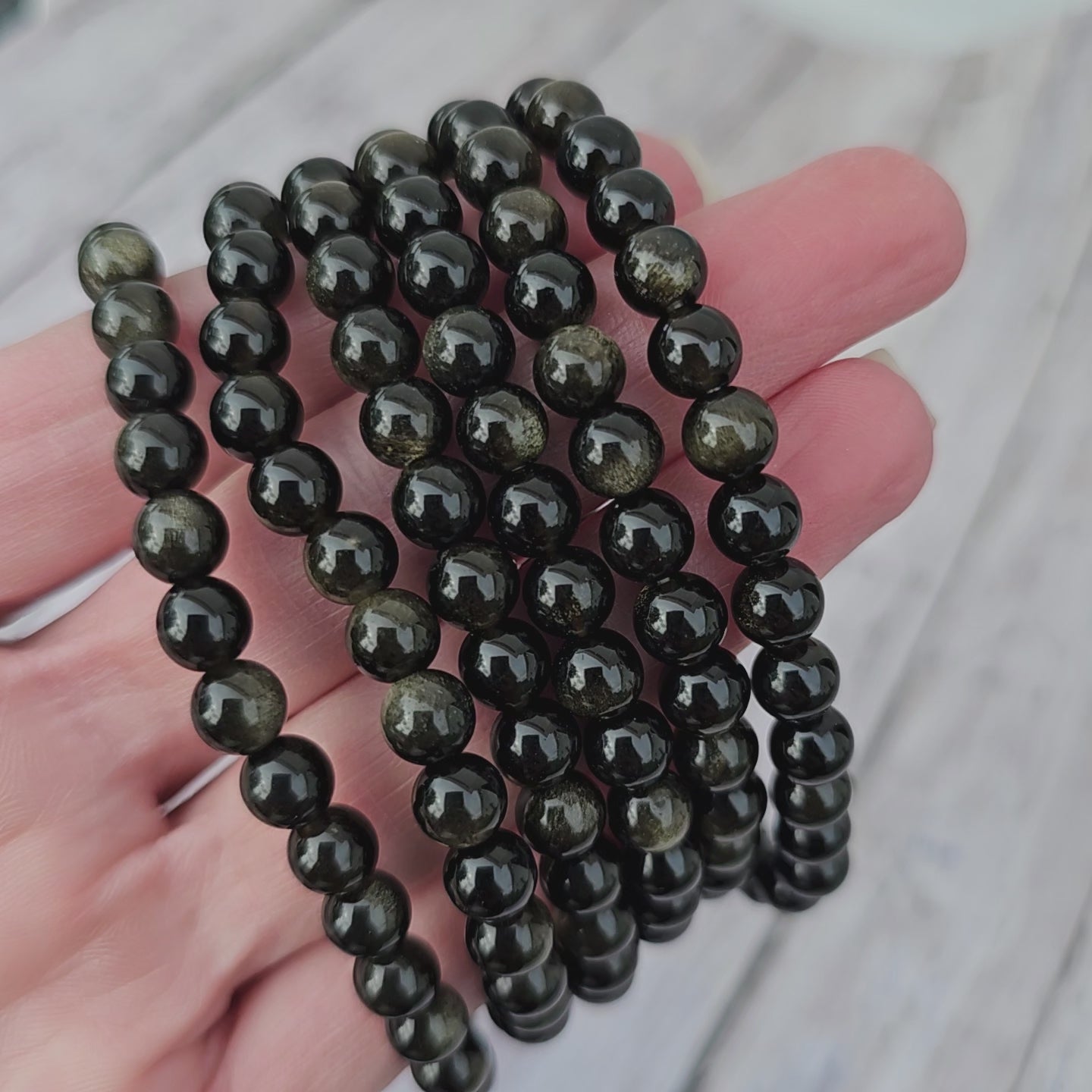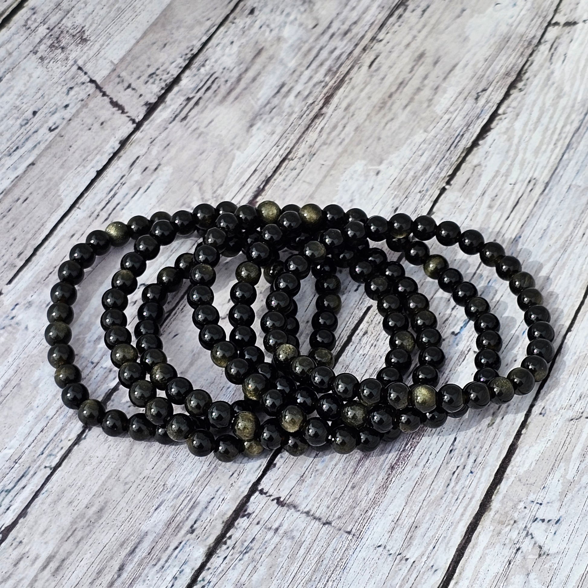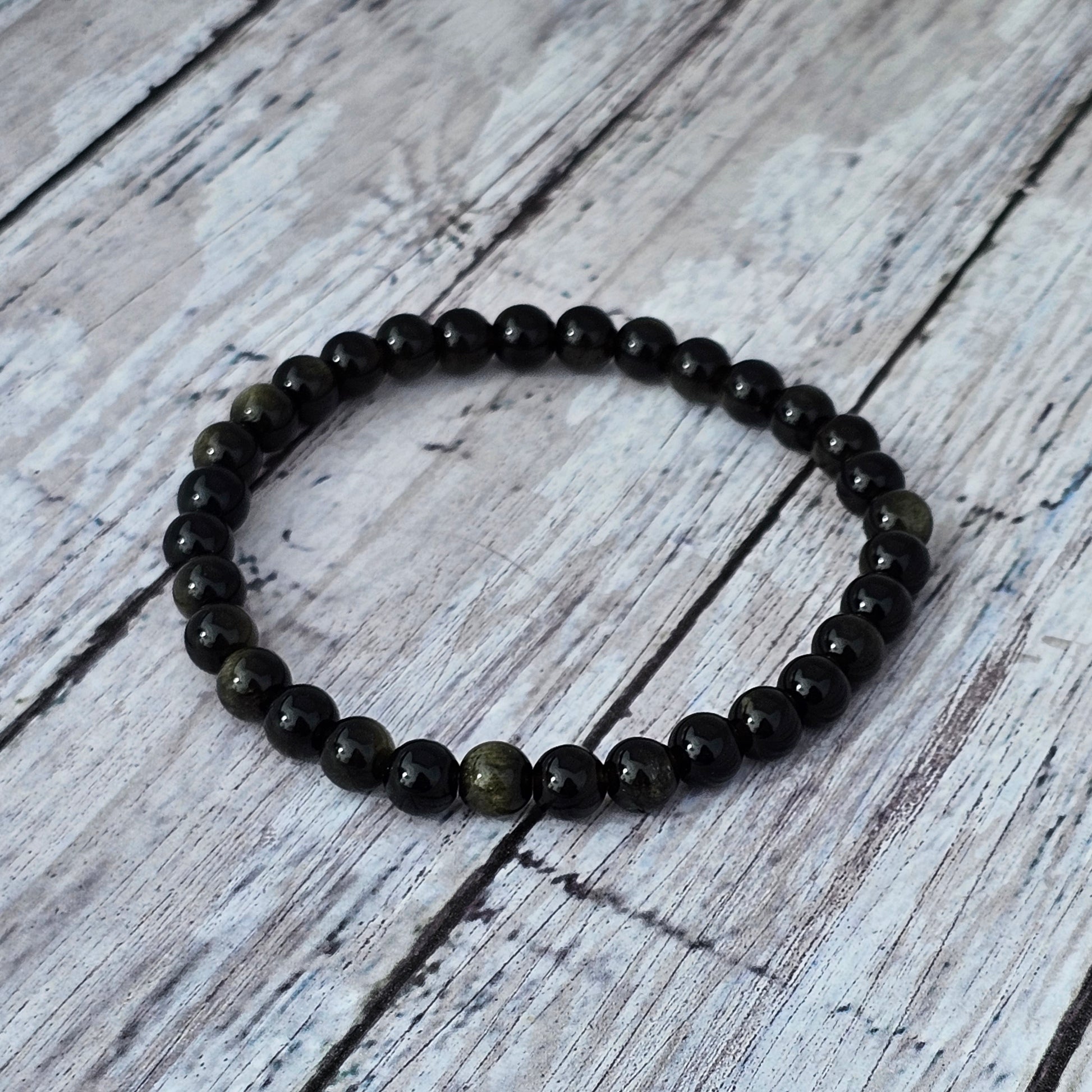 6mm Reiki Infused Gold Sheen Obsidian Bracelet