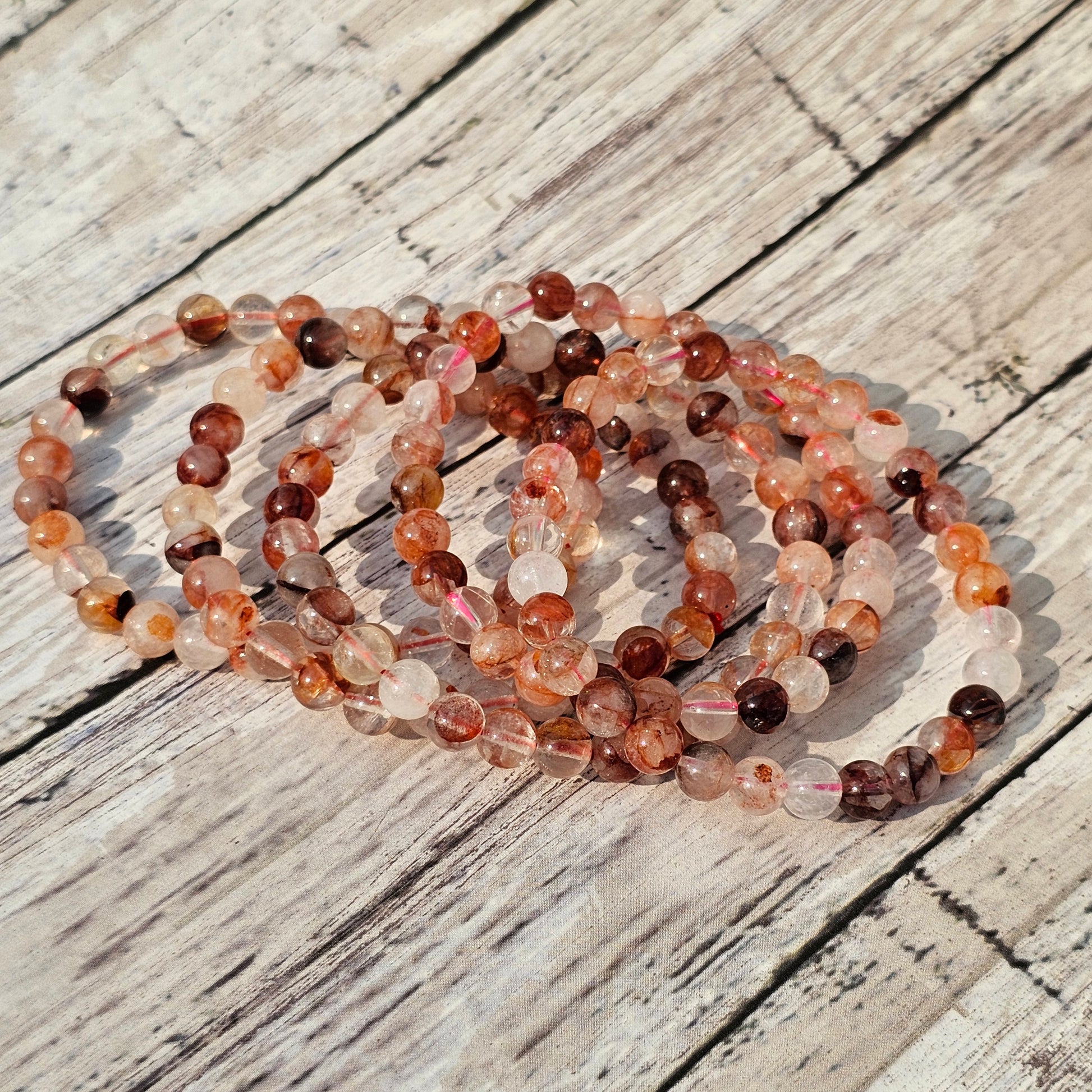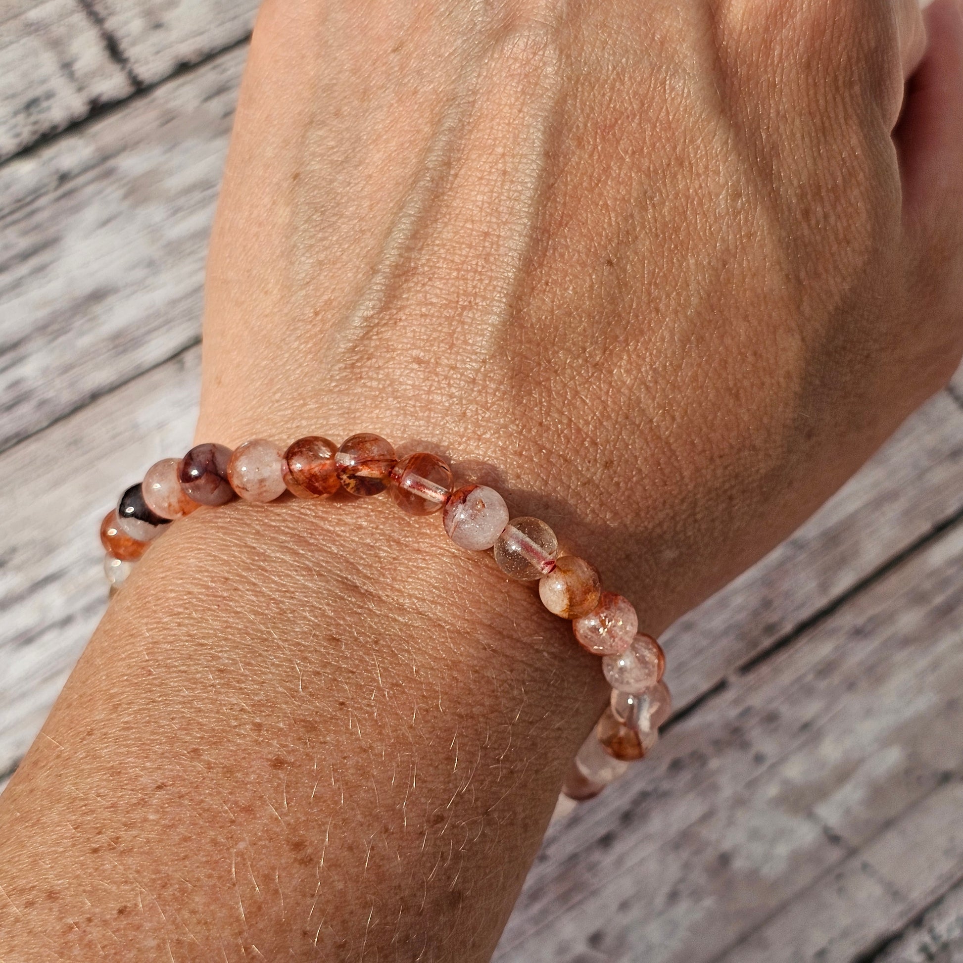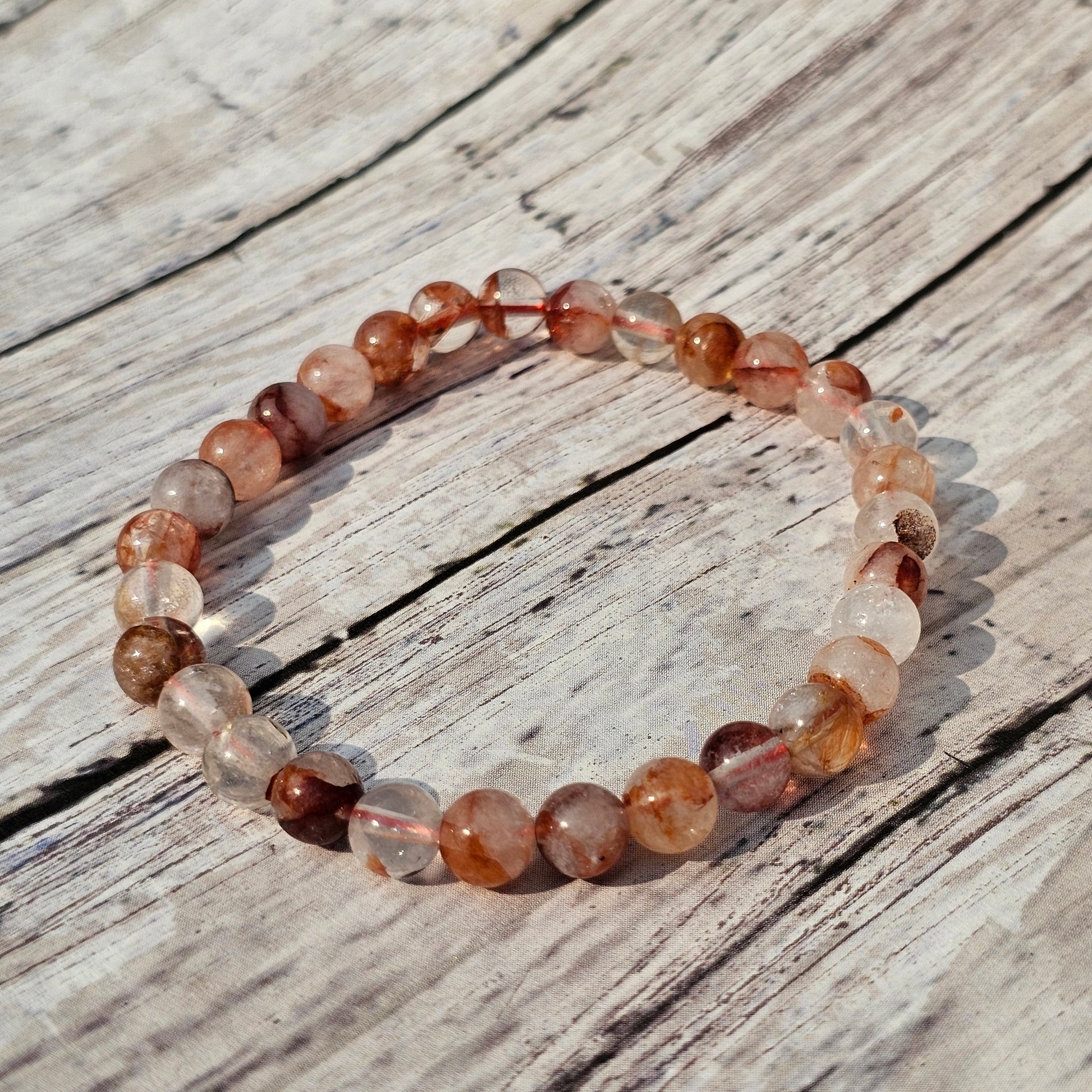 6mm Reiki Infused Hematoid / Fire Quartz Bracelet