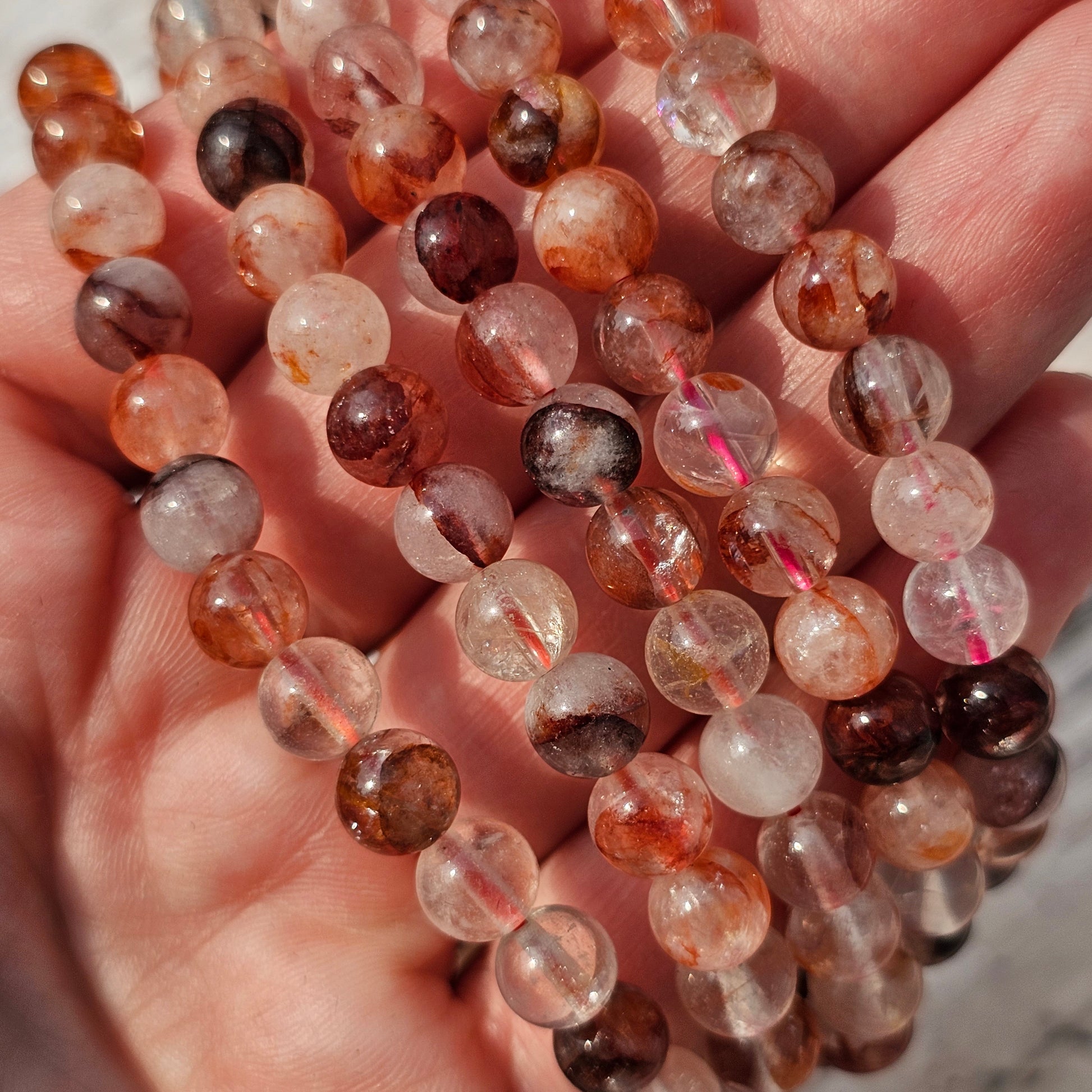 Introducing our mesmerizing Hematoid / Fire Quartz Bracelet, a harmonious blend of Hematite and Clear Quartz, radiating fiery energy and transformative power. Each bracelet is meticulously handcrafted, showcasing the captivating combination of deep red and clear quartz crystals. This bracelet serves as a powerful catalyst for grounding, vitality, and spiritual awakening.